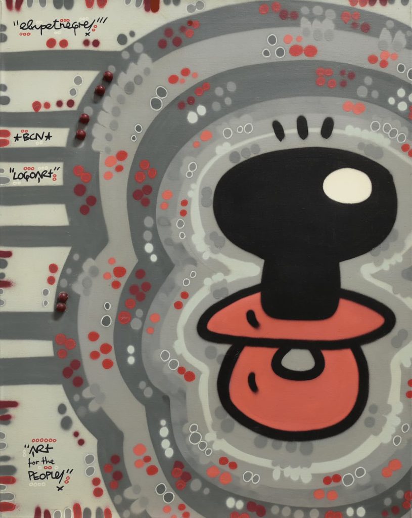 EL XUPET NEGRE. Arte para el pueblo, s.f. Acrílico, collage y aerosol sobre lienzo. Artrust.Ch © Cortesía del artista.