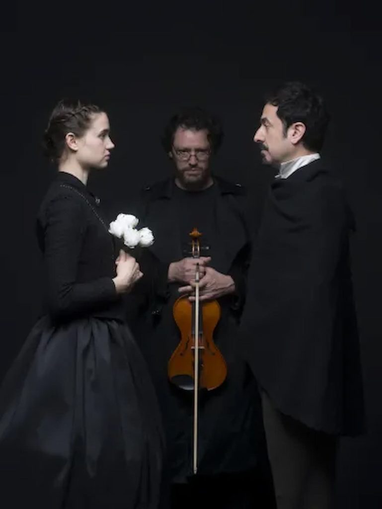 Izaguirre, que debuta con esta pieza como autora teatral y directora de escena, construye un relato escénico que entrelaza la biografía de Bécquer con su legado literario. En escena, Álvaro Alvarado, Fran Pineda y Zuria Gómez encarnan las distintas voces que pueblan el imaginario del escritor. La música en vivo —interpretada al violín por el propio Alvarado— intensifica la textura onírica de la obra, en diálogo con la escenografía y vestuario de Ada Ventura y la iluminación y espacio sonoro de Julio Bao.