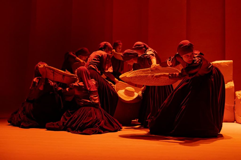 Para dar cuerpo a este homenaje, Nova Galega de Danza ha sumado la visión escénica de Marta Pazos y la coreografía de Belén Martí Lluch. El resultado es un diálogo entre la danza contemporánea y la tradición gallega, una conversación coreográfica que enlaza pasado y presente a través de contrastes visuales, cromáticos y texturales. Dique transita entre la resistencia y el sacrificio, pero también abre espacio a la ligereza y a la belleza contenida en el gesto mínimo.