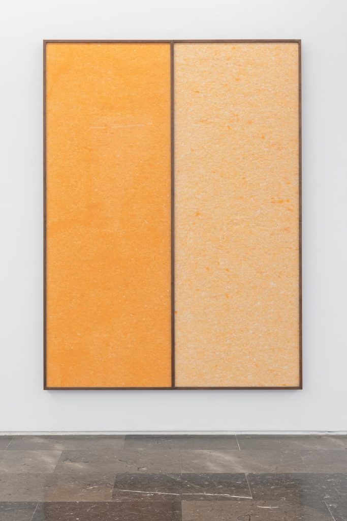 El recorrido culmina con un proyecto específico inspirado en Merzbild Kijkduin (1923), de Kurt Schwitters. En la última sala, una gran pintura y un cilindro coloreado se acompañan de reproducciones a gran escala de los volúmenes del assemblage original, realizadas en maderas nobles. El gesto no es una cita literal, sino una relectura material que prolonga el espíritu experimental de Schwitters desde una sensibilidad contemporánea.