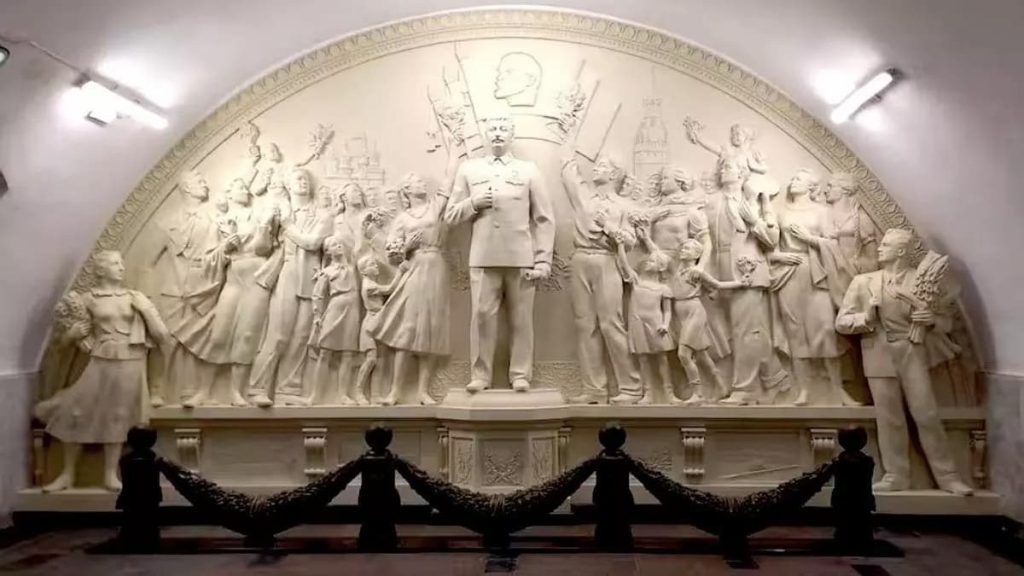 Conjunto escultórico soviético dedicado a Stalin en el metro de Moscú. / EFE Xavier Carbonell