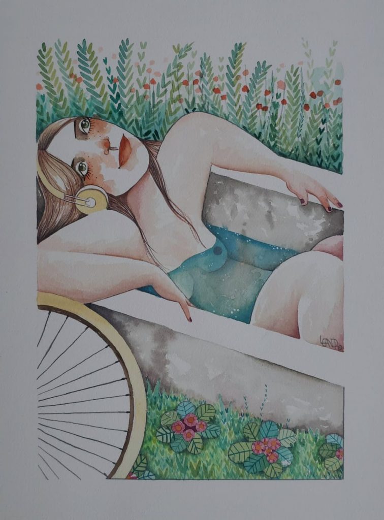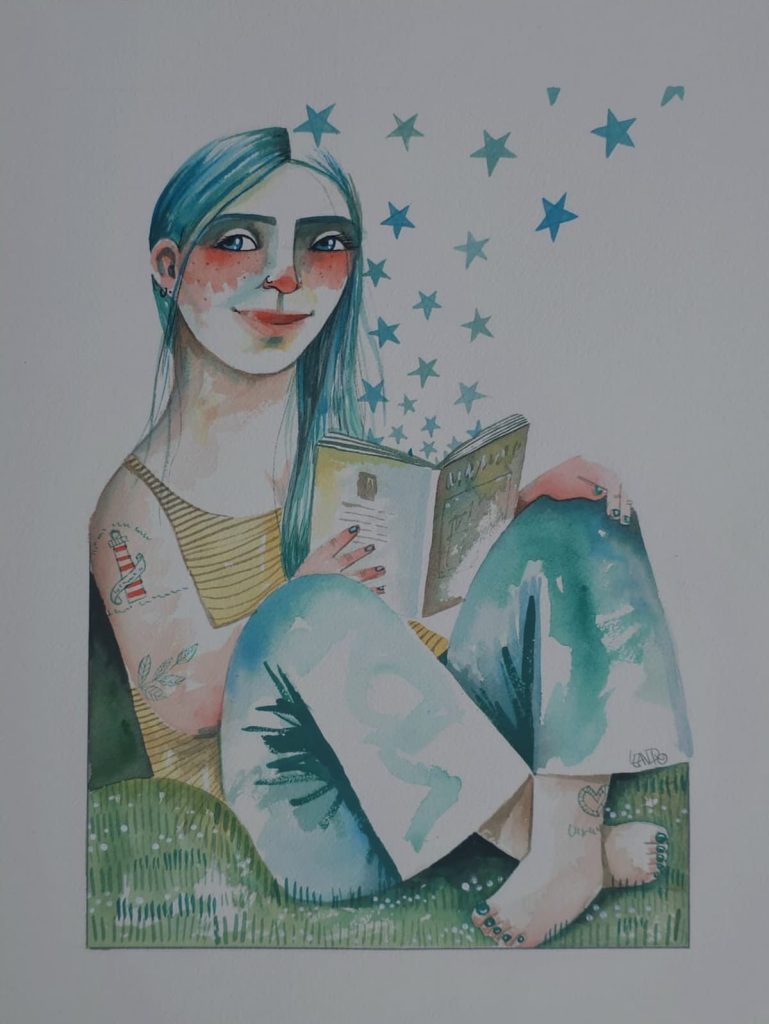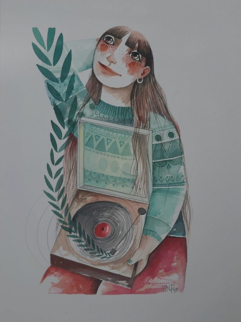 La mayoría de las obras son personalizadas. Esto es que me cuentan y yo ilustro lo que me cuentan. Muchas veces son grupos de amigos que se juntan para hacer un regalo y me describen a los protas, gustos, anécdotas, escenarios favoritos… las técnicas que mas practico son el oleo y la acuarela. Cada una tiene sus peculiaridades pero agradezco ir alternando.