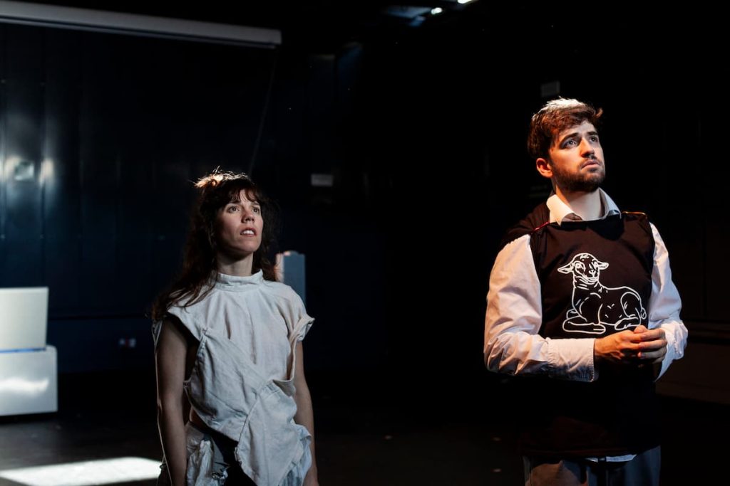 La autora y directora, Eva Mir, juega con los códigos de un teatro híbrido —entre el barroco y el pop, entre la liturgia y el videoclip— para exponer la fragilidad contemporánea. Su Pródigo no busca moralejas sino espejos rotos: el neón sustituye al vitral, el frigorífico al altar, la nostalgia del escuálido hogar congelado se impone con creces al silvestre becerro cebado. En ese cruce de épocas, las voces de Laura Romero, Aurora García Agud, Sonia Almarcha, Íñigo Rodríguez-Claro, Pablo Justo y Marcos Nadie componen un coro coral y carnal, donde cada gesto parece al borde de la desintegración.