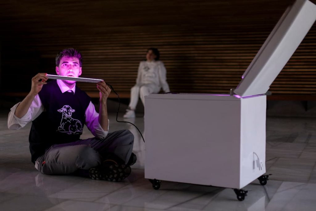 La autora y directora, Eva Mir, juega con los códigos de un teatro híbrido —entre el barroco y el pop, entre la liturgia y el videoclip— para exponer la fragilidad contemporánea. Su Pródigo no busca moralejas sino espejos rotos: el neón sustituye al vitral, el frigorífico al altar, la nostalgia del escuálido hogar congelado se impone con creces al silvestre becerro cebado. En ese cruce de épocas, las voces de Laura Romero, Aurora García Agud, Sonia Almarcha, Íñigo Rodríguez-Claro, Pablo Justo y Marcos Nadie componen un coro coral y carnal, donde cada gesto parece al borde de la desintegración.