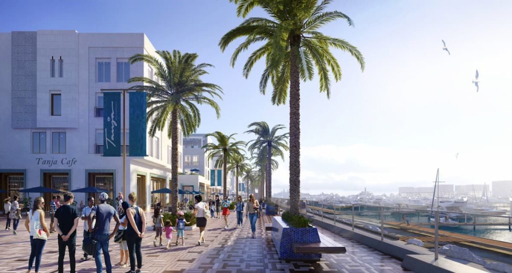 Además el proyecto incluye un puerto deportivo urbano con más de 1.400 amarres para embarcaciones, cafés-restaurantes, tiendas, estaciones de combustible, aparcamiento cubierto y el histórico Royal Yacht Club de Tánger, fundado en 1925, cuya presencia refuerza tanto la tradición náutica como el prestigio del enclave