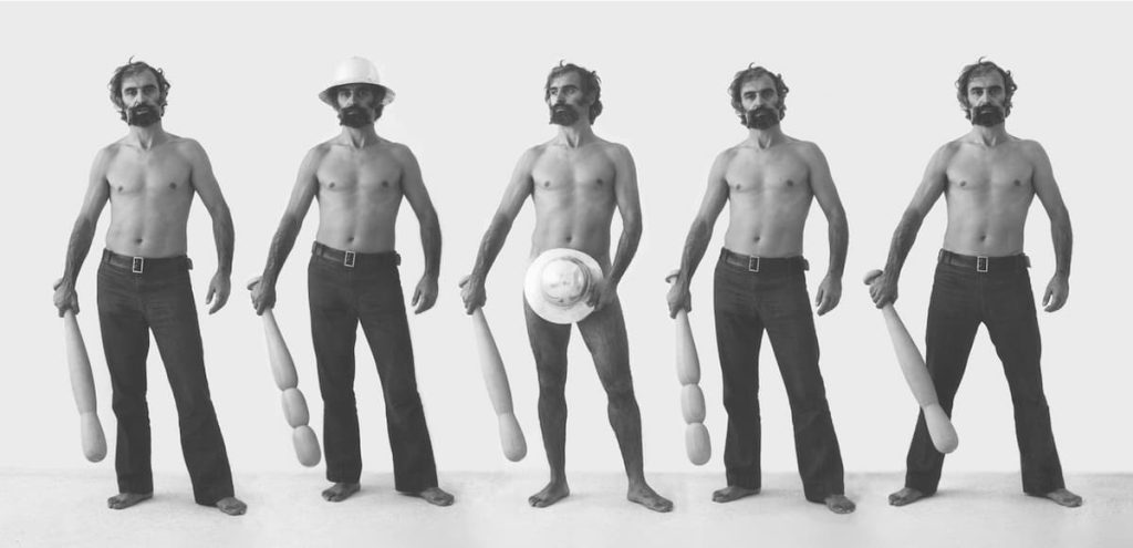 Inspirada en la manera en que el propio Theodoros concebía las exposiciones como actos performativos, la muestra adopta una estructura que subvierte las convenciones del género retrospectivo. En lugar de organizar una cronología cerrada, el EMΣT plantea un diálogo vivo entre generaciones. Junto a las obras del maestro, se exhiben creaciones de cinco artistas griegos contemporáneos: Nikos Arvanitis, Paky Vlassopoulou, Iris y Leda Lykourioti (el dúo A Whale’s Architects), Kostas Bassanos y Yiannis Papadopoulos. Todos ellos han explorado problemáticas cercanas —la relación entre cuerpo, materia y poder, la función social del arte, o las tensiones entre espacio institucional y práctica creativa—.