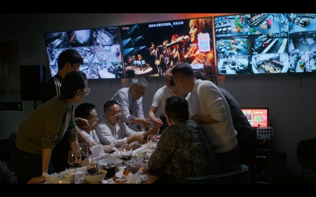 Los espacios que atraviesa la película configuran una cartografía precisa de ese universo. Los karaokes clandestinos chinos, donde se entrelazan ocio y negocio, actúan como lugares de reactivación del pasado y de reencuentro con una comunidad atravesada por códigos propios. Las visitas a Laosan —amigo que quedó paralizado tras un tiroteo en el que participó A Wen— introducen una dimensión material de la violencia, inscrita en el cuerpo. Las conversaciones con la madre, figura central en la historia migratoria de la familia, aportan una capa afectiva que complejiza cualquier lectura unívoca. A todo ello se suman los encuentros con un maestro budista en China, que abren un espacio de reflexión espiritual y tensionan las lealtades heredadas.